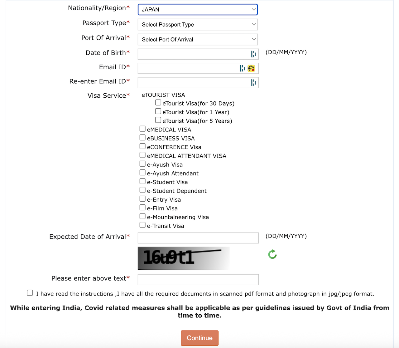 If information furnished is found to be incorrect at the time of entry or anytime during stay in India, you will be refused entry.(インド入国時または滞在中に提供された情報が誤っていることが判明した場合、入国を拒否されます。)と注意書きがあります。
