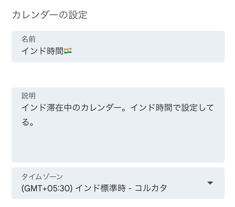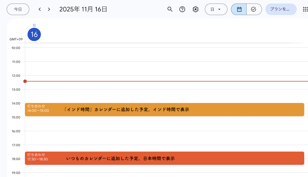 日本にいる状態で、「インド時間」カレンダーに登録すると間違えそう。